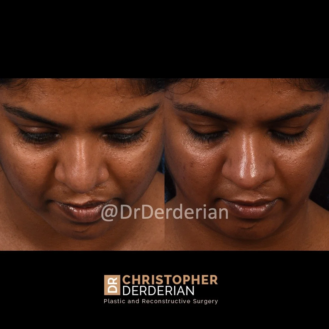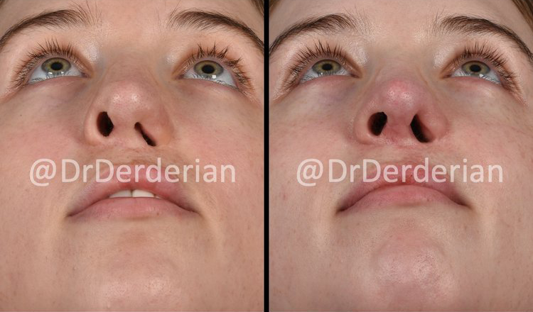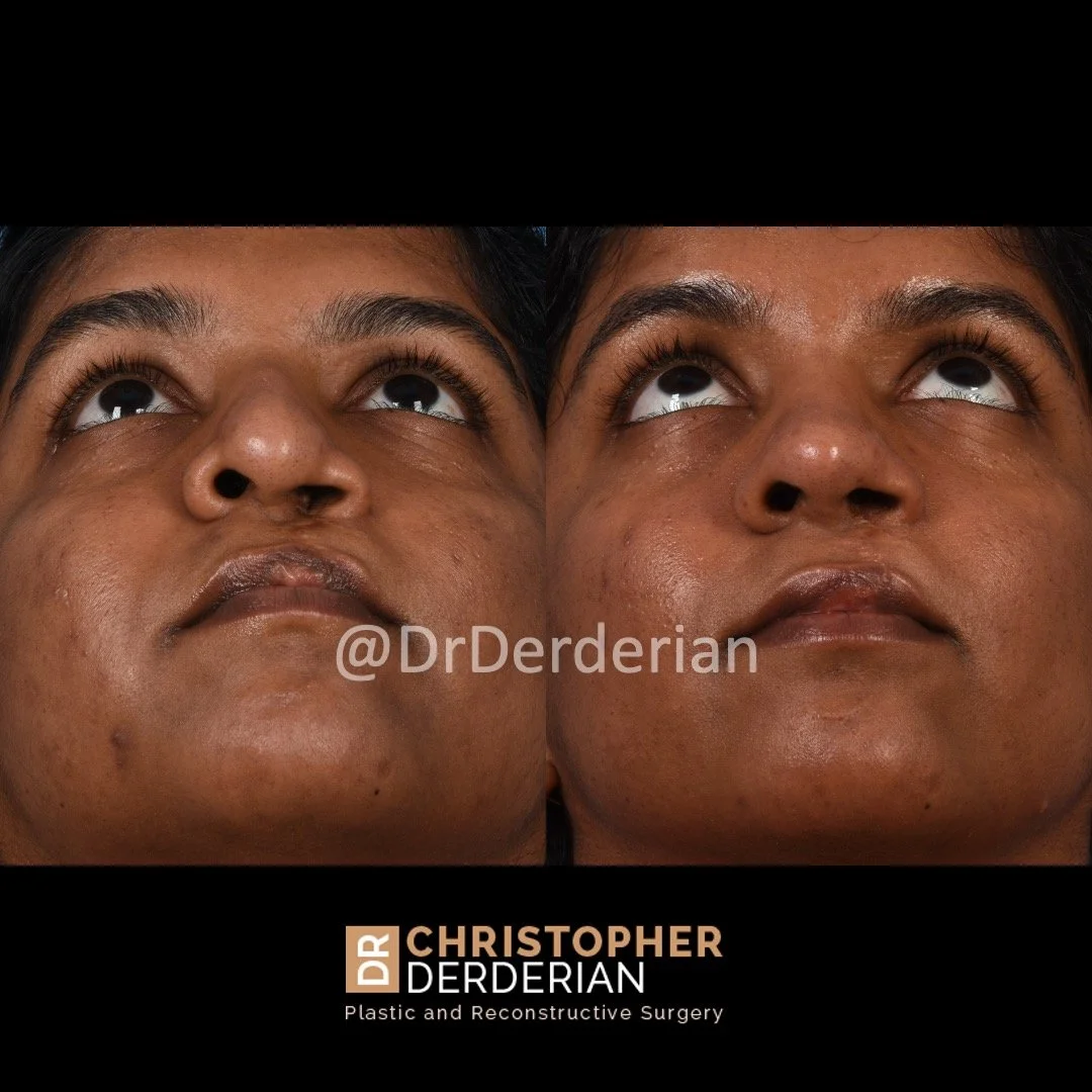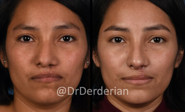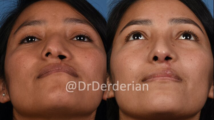 Dr. Derderian uses an open approach to cleft rhinoplasty because the open approach allows direct visualization of the nasal cartilages. Open rhinoplasty requires a small incision in the columella (the skin between the nostrils) with the remaining incisions made inside the nose. Through this approach the skin of the nose is elevated off of the underlying cartilage and bone that allows all surgical maneuvers to be performed under direct visualization. This incision typically heals with an imperceivable scar.